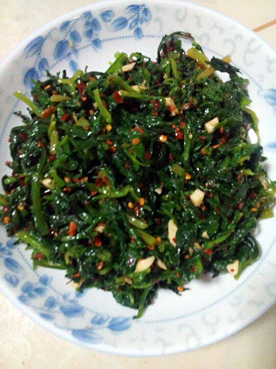 1. 将芹菜叶洗净后, 用热水焯两分钟,用凉水洗好,去水备用。