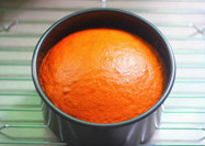 13. 烤好的蛋糕倒扣在凉架上冷却