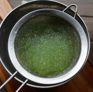 3. 注意:一定要关火加盖子焖5-10分钟,(至没有白芯)然后用筛网过滤出西米,冲洗几遍去粘稠的胶质,这个时候的西米呈透明圆粒状,很饱满的