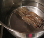5. 锅中放入适量冷水,水开后把虾放入其中,煮变色后捞出晾凉备用。