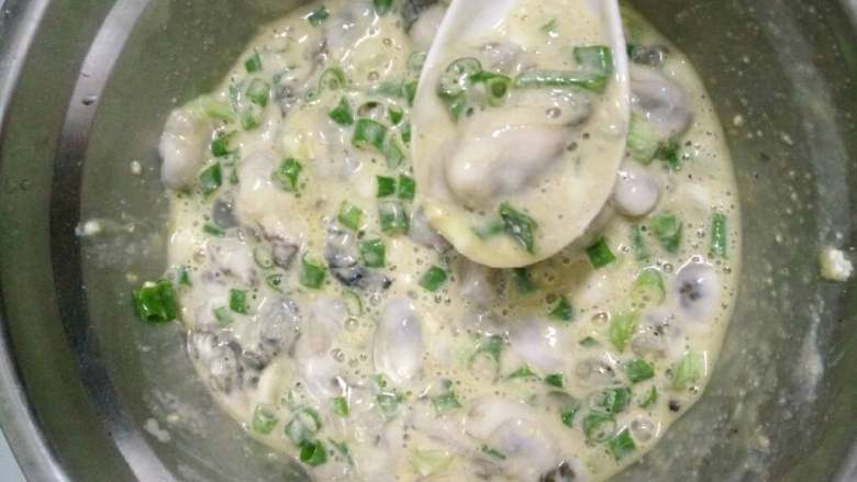 5. 再加入鸡蛋一个和葱花和适量盐粉