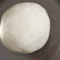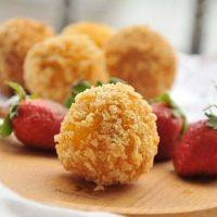 6. 取一个山药球压扁,然后放入一个芝士小圆球