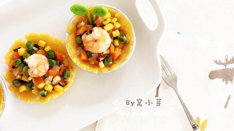 彩蔬虾仁蒸玉米挞—让宝宝直接端着玉米小碗开动吧!