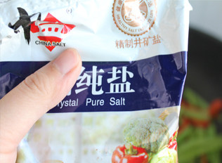 9. 放入苦瓜,翻炒片刻,放盐调味。