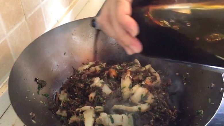 - 因为笋干梅干菜含有足够的盐分,酱油要少放,不用再放盐,直接收汁起锅。