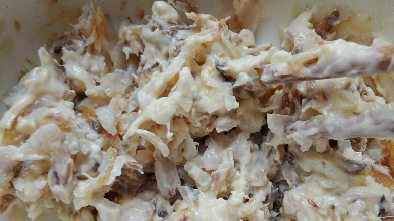 6. 青瓜切片烫熟过凉,把黄花鱼酱放到青瓜片上。
