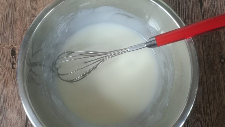 19. 倒回蛋白盆内,混合均匀。预热烤箱上下火125度10分钟。