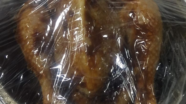 5. 5.抹好酱的鸡用保鲜膜包起来冷藏一晚上。
