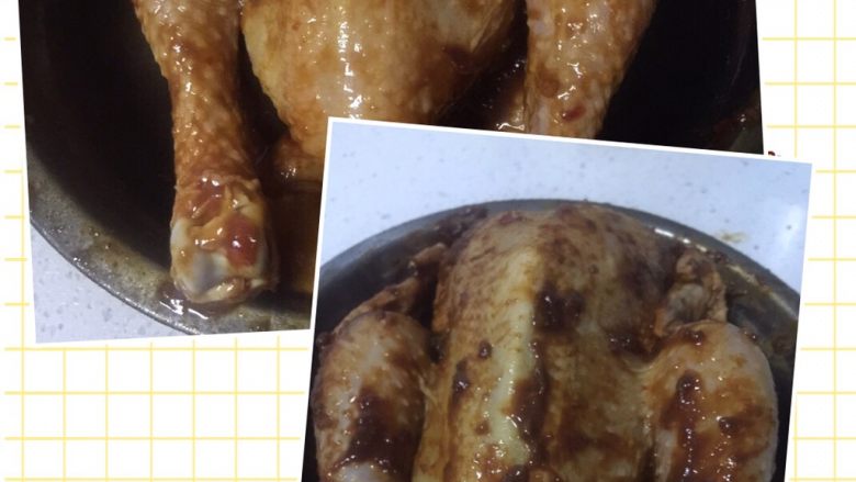 9. 9.开中火烤5-10分钟,然后转小火15-20分钟;把鸡翻一面继续烤,中火5-10分钟,转小火15-20分钟;不要急着开盖,再焖10分钟,就可以出锅了。