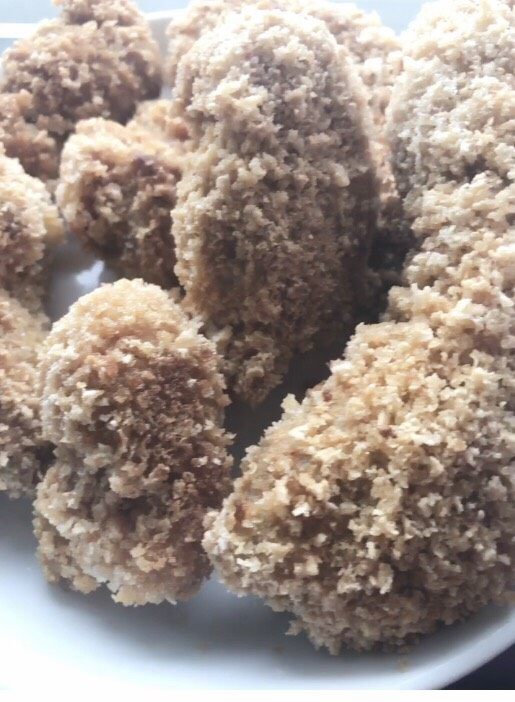 15. 放到面包糠里滚一圈。