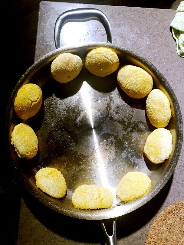 1. 玉米粉面粉3比7的比例混合,加入5克酵母加水揉成面团发酵两个小时以上备用。这个量你自己把握面团多少。