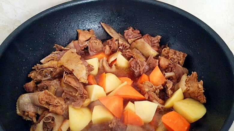 9. 倒入鸡汤,鸡汤刚好没过肉块。