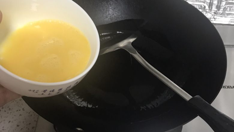 5. 待蛋起了蛋皮,迅速用锅铲扒开