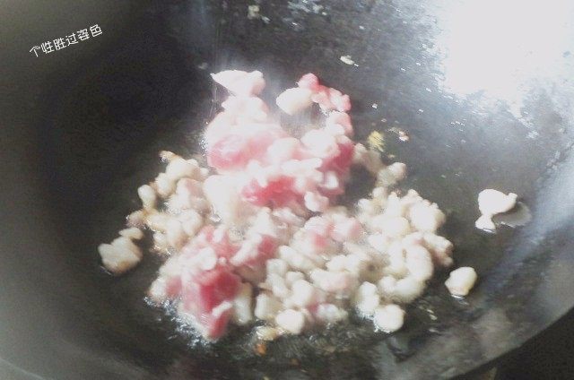 1. 五花肉切小丁,我一般都是限放冰箱冷冻层冻硬了再拿出来切,比较好切