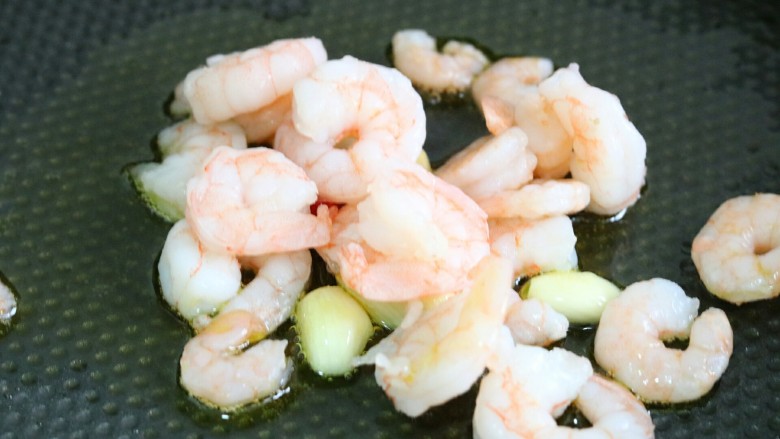 11. 然后将葱姜挑出蒜留下,将虾仁放入~