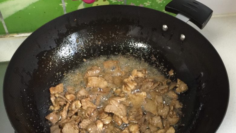 7. 热锅起油,油稍多点,大火爆炒羊肉,炒变色;