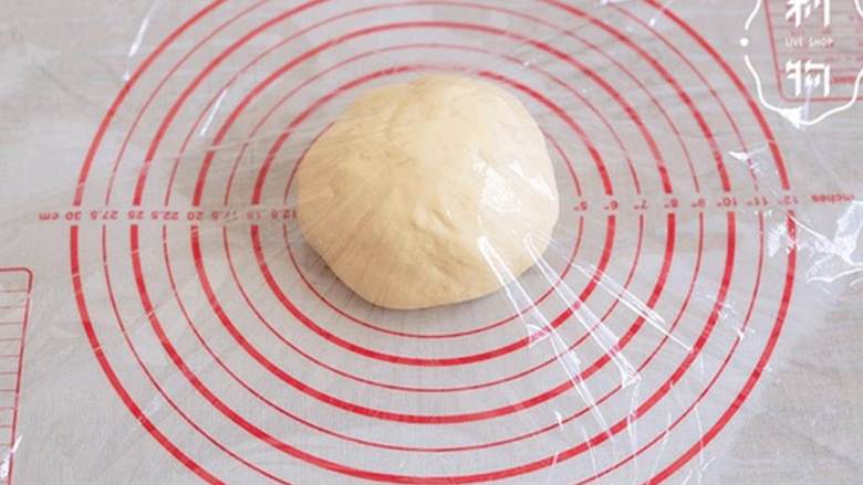 5. 将面团揉圆,表面光滑,盖上保鲜膜,室温下发酵至2倍大。(大约需要2小时)