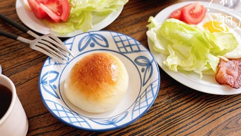 6. 一次发酵完成后,轻拍面团排出气体,平均分成8分,揉成球,放到不沾烤盘上。