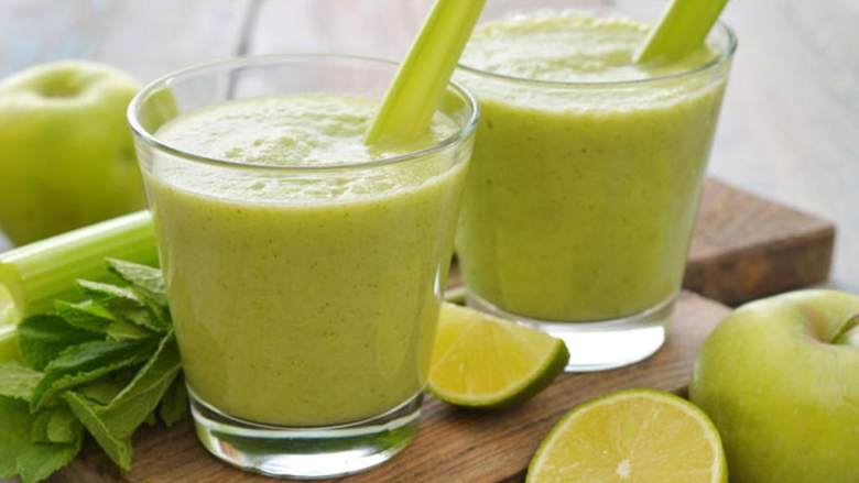 2. 加入青苹果、菠萝、椰子油、青柠和冰块。