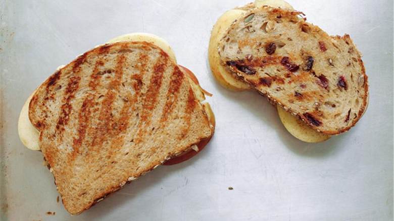 7. 放上三明治,涂油的一侧朝下,煎2-4分钟。