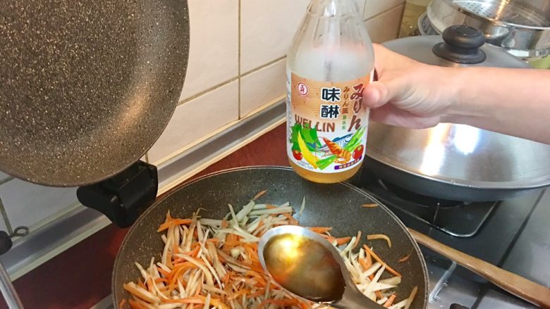 5. 將步驟1切好的胡蘿蔔絲放入鍋內翻炒