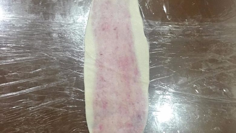 8. 取第一個包好的,用橄麵棍從中間輕壓後分別向上及向下桿開桿薄,桿成牛舌狀.