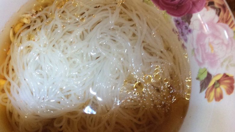 8. 冷面煮两三分钟,捞出过凉水,控水捞入装调料的碗内