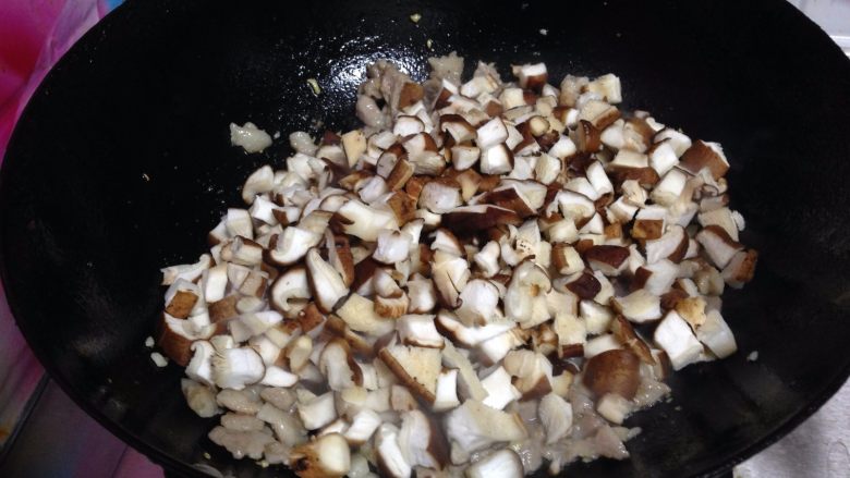 2. 鲜香菇洗净切成小丁(香菇梗不用去掉,切丁就行)