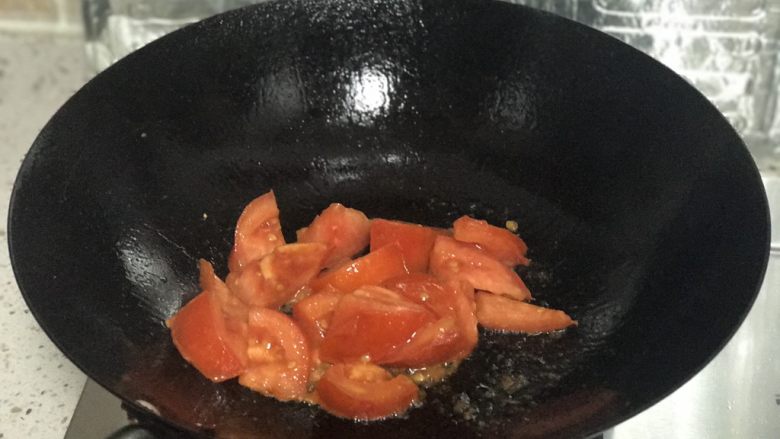 番茄花菜,将花菜倒入锅内,与番茄一起翻炒,使花菜均匀裹上番茄汁