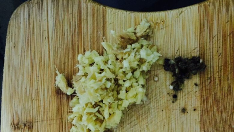 11. 锅中剩下余油,倒入姜末、蒜末、花椒、青椒、红椒翻炒