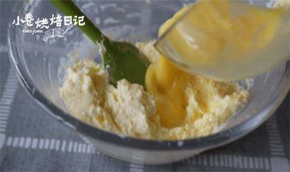 4. 分两次加入打散的鸡蛋液,搅拌均匀。