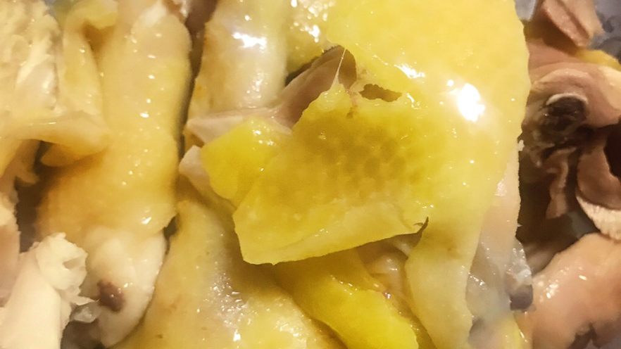 9. 也可以斩件吃,鸡皮脆爽,腌制的时候盐已经够味,一定要趁热吃,一人干一只都没有问题