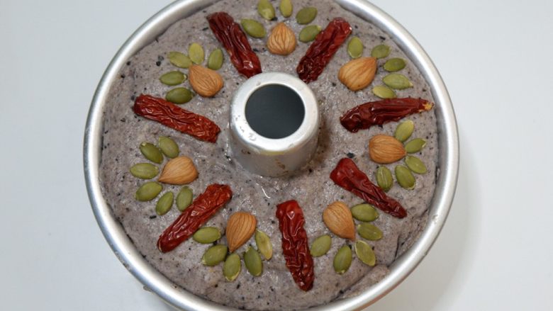 15. 然后在红枣间隔的位置放上一颗杏仁,像图片这样。