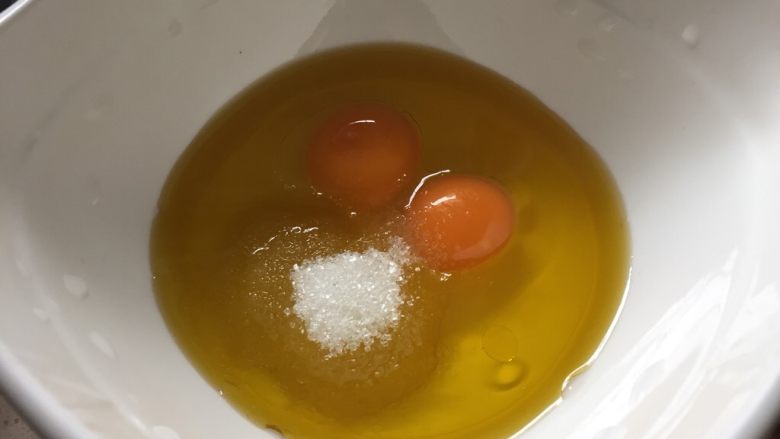 1. 碗中磕入两颗鸡蛋、倒入食用油