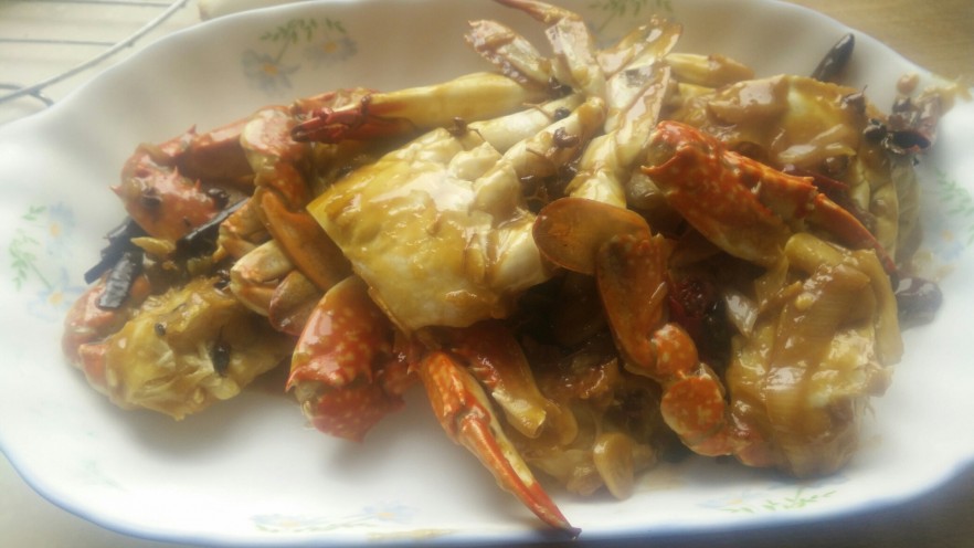 1. 揭壳洗净从中间切开,将蟹肉部分拍上淀粉备用。