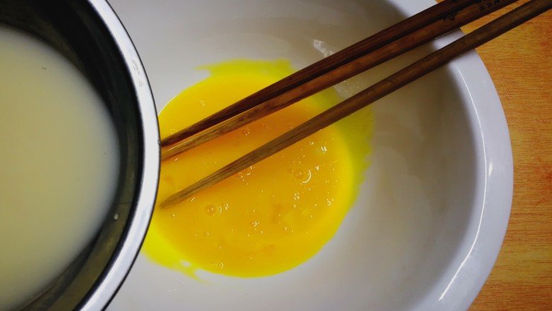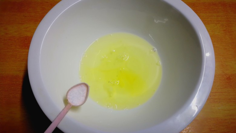 7. 准备两个无油无水干净的大碗,蛋清蛋黄分开放入两个大碗,蛋黄搅散