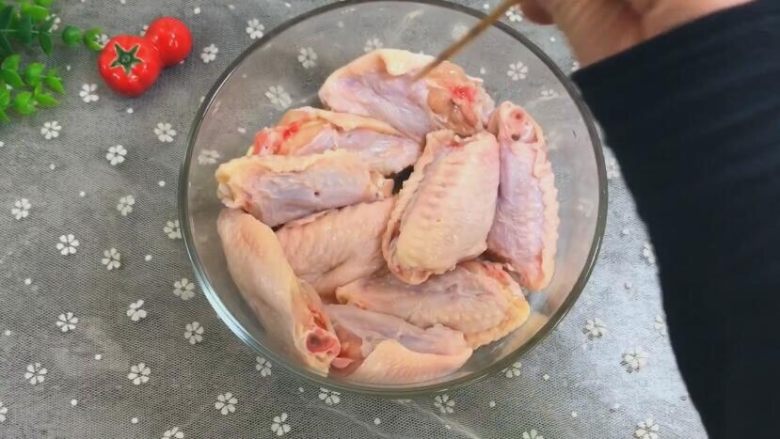 1. 鸡翅10个 用竹签扎满孔 (这样好入味)