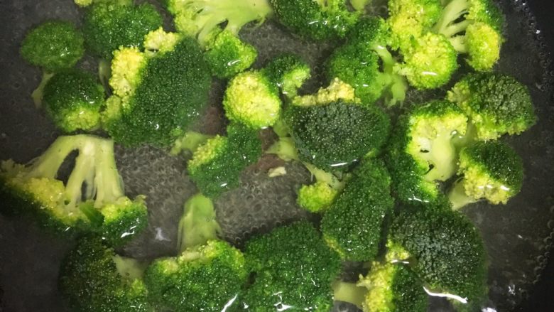 8. 再放入西蓝花翻炒~加点儿清水继续翻炒~最后加盐调味就好啦~