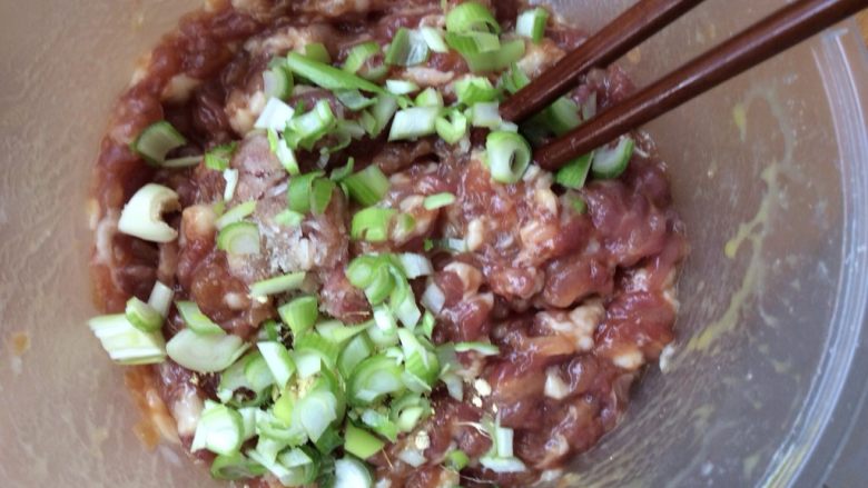 5. 加入葱花,姜粉,少许熟油搅打上劲