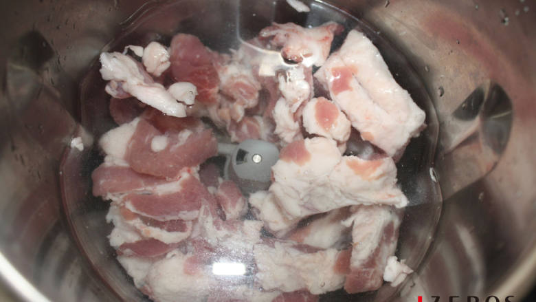 1. 1. 将肉切成块,冷水下锅,煮开停两分钟。(也可以用西式厨师机煮,10分钟100度速度1档)