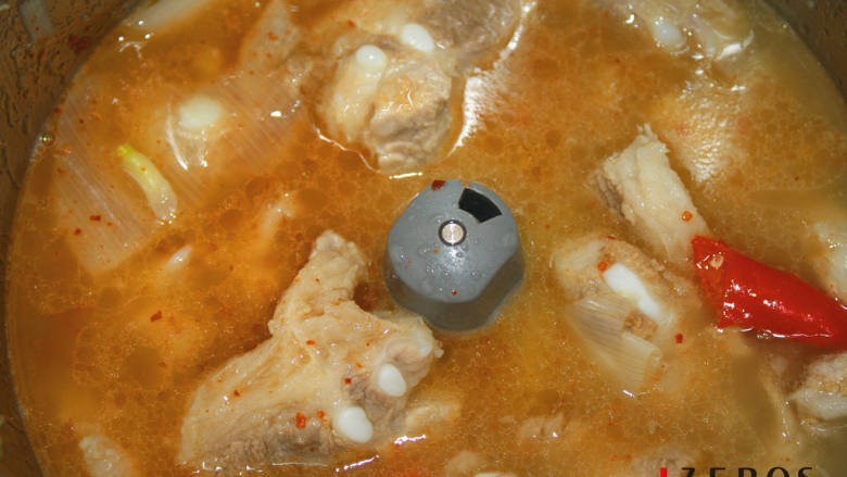 4. 4. 放入葱姜花椒八角辣椒,盖上杯盖,设置时间6分钟,温度120度,速度1档启动。