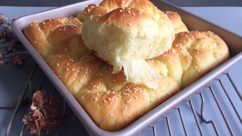 22. 发酵好后表面喷点水撒上白芝麻放进预热好的烤箱200度20分钟