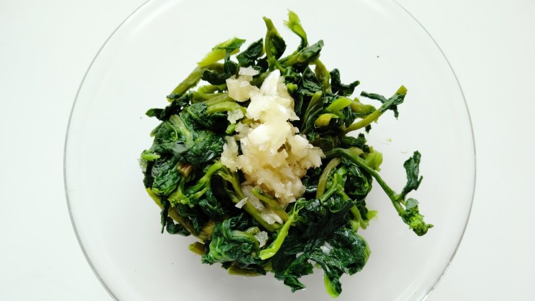 7. 蒜瓣捣成蒜泥放一点点香油搅拌均匀。