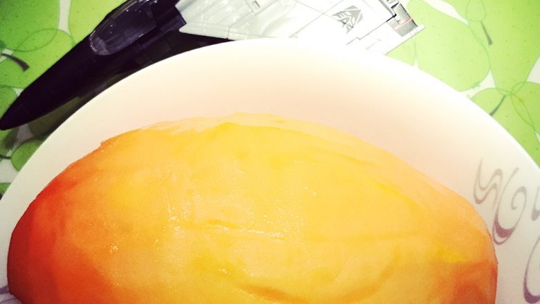 10. 等待降温的过程中,牛奶中的蛋白成分在活力强大的木瓜蛋白酶作用下发生凝固。木瓜撞奶甜品就制作完成啦。