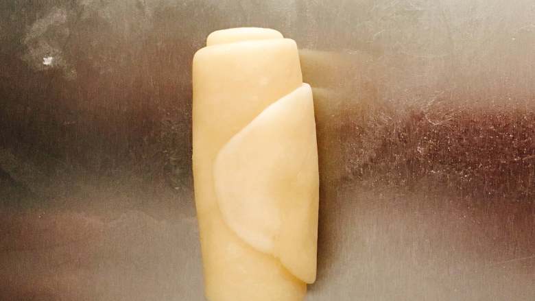 千层蛋黄酥,将一侧往上按压扁
