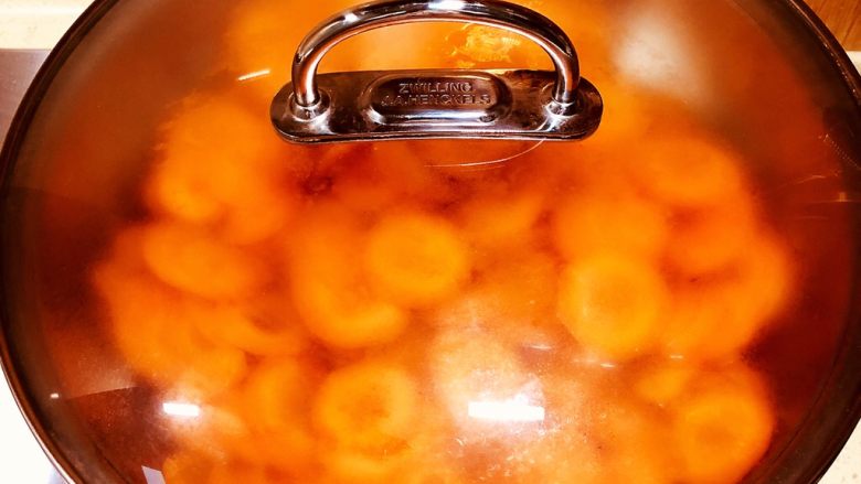 胡萝卜糖,可以盖上锅盖。注意要勤看,大约三小时。