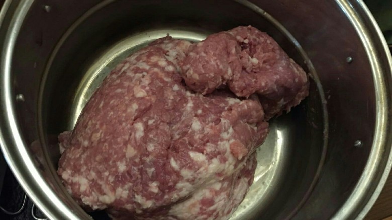 闹新春自制—炸狮子头—【四喜丸子】,全部加进肉末中。