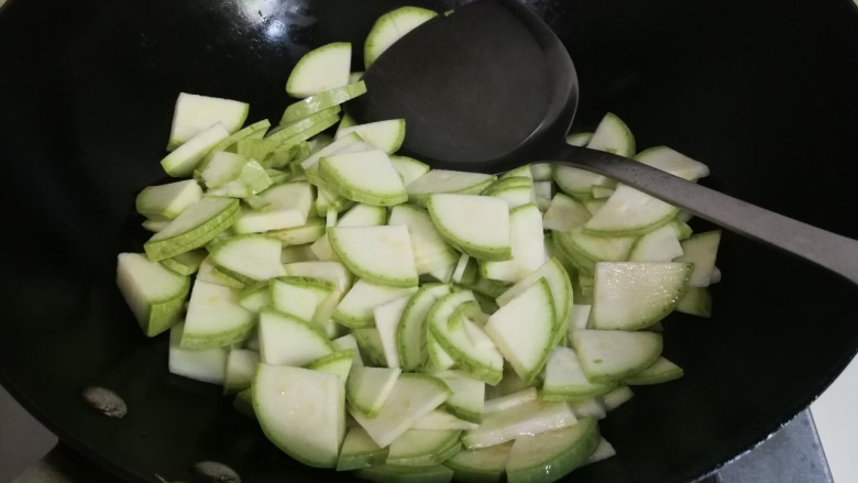 4. 热锅凉油放入西葫芦