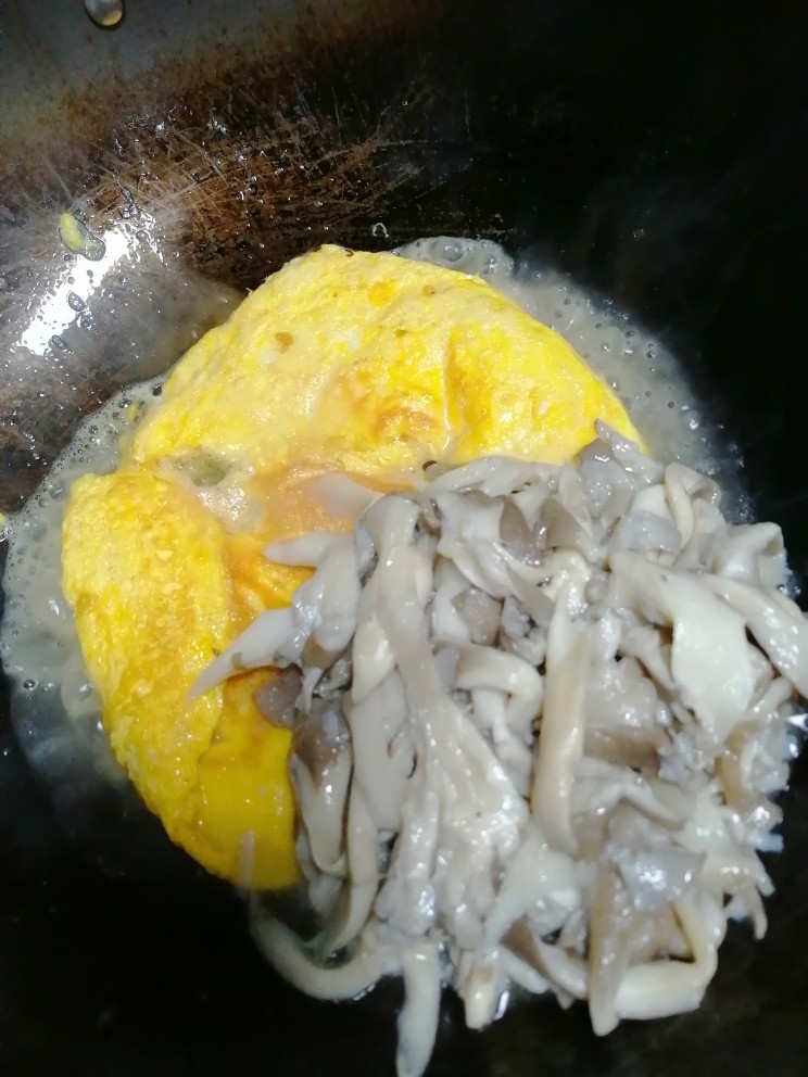 蘑菇炒鸡蛋,倒蛋下去煎蛋