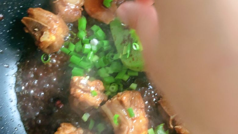 17. 加入蒜片搅拌均匀,盖盖炖10分钟左右